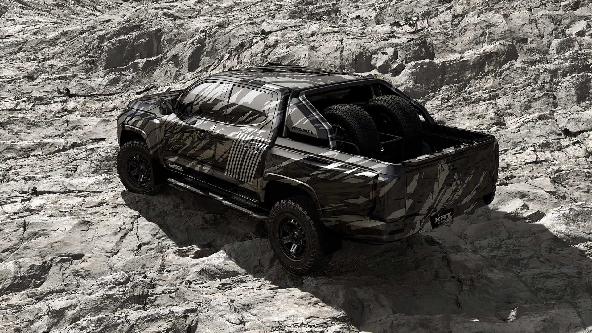 The body features a camouflage design inspired by lava rocks packed with condensed energy, and the sides have been adorned with a graphic of the 10-parallel line Ralliart brand icon that expresses Mitsubishi Motors’ passion for driving.